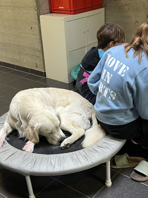 In der Primarstufe Giebenach ist der Einsatz von Therapiehunden möglich. Der Hund muss eine spezielle Ausbildung als Therapiehund absolviert haben, um