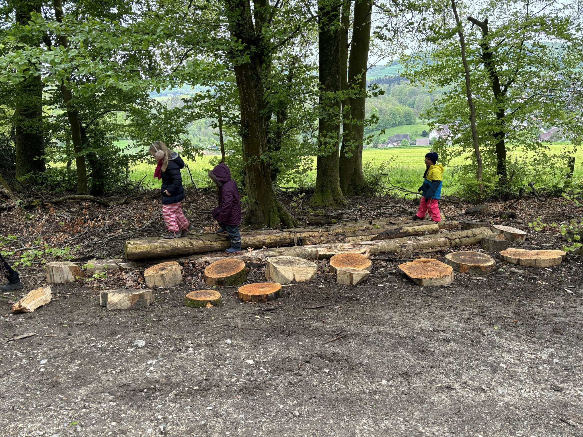Ein besonderes Highlight ist unser wöchentlicher Waldtag: Bei gutem Wetter verbringen wir einen Vormittag im nahegelegenen Wald. Dort erleben die Kinder die Natur mit allen Sinnen, bewegen sich frei, forschen, bauen, spielen – und lernen ganz nebenbei Wichtiges über sich selbst, ihre Umwelt und das Leben in der Gruppe.